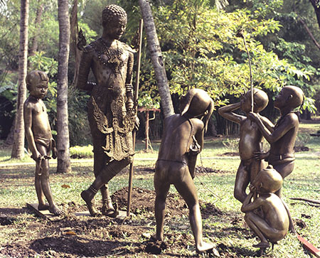 งานประติมากรรมไทย เช่น ประติมากรรมรูปเจ้าเงาะกับเด็กเลี้ยงควาย จากเรื่องสังข์ทอง พระราชนิพนธ์ในพระบาทสมเด็จพระพุทธเลิศหล้านภาลัย ที่อุทยานพระบรมราชานุสรณ์พระบาทสมเด็จพระพุทธเลิศหล้านภาลัย อ.อัมพวาจังหวัดสมุทรสงคราม