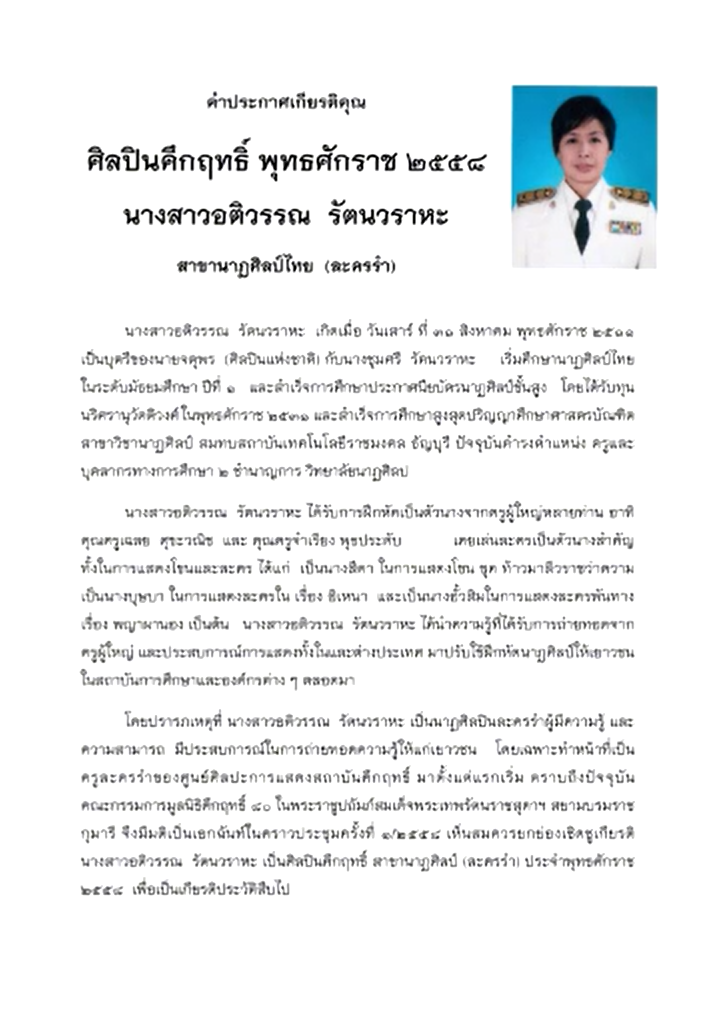 รางวัลศิลปินคึกฤทธิ์ ประจำปี 2558 - สาขานาฏศิลป์-ละครรำ